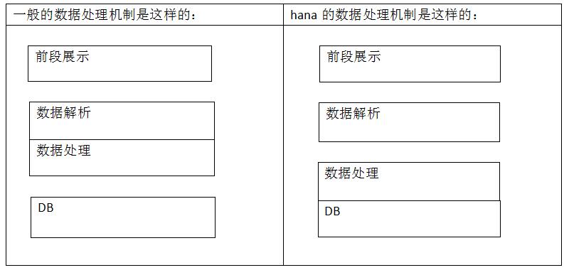 sap hana常问的面试题总结: 1,sap hana是内存数据库,是可以取到实时数据的。支持列和行两种计算,并且可以根据需求互相转换,这个不是hana独有的技术,但是hana做的很好,以往的数据库是行存储的,一张有有很多字段,但是我们也想就需要两三个字段,我们的有效数据利用率就很低,但是列存储的时候就可以需要那两个字段就读取那两个字段,提高效率。 比如一个表有100个字段,有时我们就需要5个字段信息,但是是行存储的,就要把这条数据全部加载到内存,再取我们需要的5个字段,这就有95%的数据是不需要的,5%的有效数据,造成资源的浪费。 2,高压缩比20:1 比如:20个g的数据,通过hana的高压缩可以就占用1个g。 3,内存和硬盘的运行速度是1000:1,这个是硬件的提升。 4,数据的分割,可以把数据分割到各个server上,负载均衡。 5,普通数据库读取数据,是从硬盘读入内存,有io开销,很浪费资源,但是hana是内存数据库,不需要从硬盘读入到内存中,没有了io,提高了速度 6,在hana中使用slt服务器,slt服务器一直在来回的复制数据。 7,在bw中我们使用cube,使用星形结构,用空间换时间,但是hana的性能很好了,不需要这些,在bw7.3的sp5补丁后可以做bw on hana 但是不用cube了。 8,不使用聚集了,在bw中经常使用聚集来出报表,但是这样会浪费大量内存,hana是靠内存收费的,所以也就不用聚集了 9,联想现在在测试阶段,已经有大约100t的数据,现在拿出大约20t数据做开发测试,正在逐步的向hana转移 10,农夫山泉原来一个计算运输的表,要跑25个小时能计算完,现在只需要57秒。 11,hana是根据内存大小来收费的,今年联想签了个5tb内存的大单,原来是512gb的,据说是全球第2大单。 12, 一般的处理机制是从前段展示层下达一个看报表的命令,发到中间的application层,application层去解析,根据需求去DB数据库层取数据,数据拿到application层,再做数据的处理,同时再回写给数据库,再把报表返回到前段展示层。 Hana是这样,前段展示下命令,发到application层,application就解析下,发到DB数据库层,数据的处理全在DB层中处理,再把报表结果返回到application层,再传到前段展示层。 Hana这种处理方式,会比原来的速度提高很多倍,因为,数据库中处理数据会比application层快很多,不需要把大量数据提取到application层,网速的限制,拷贝数据的时间限制都制约了速度,同时处理完了又把数据回写到数据库,又浪费很多速度和资源,再有内存中的速度是硬盘的1000倍,没有了io的开销,都大大提高的速度。 SAP HANA studio: Information Modeler 数据 Attributes – 描述性数据(类比于SAP BW术语中的‚Characteristics‛ – Calculated Attributes Measures – 数量化并经过计算的数据(类比于SAP BW的‚key figures‛ – Calculated Measures & Restricted Measures Views Attribute Views – 即维度(dimensions) Analytic Views – 即信息立方体(cubes) Calculation Views –类似BW中带有服务概念的‚virtual provider‛ |