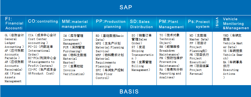 本篇SAP培训资料是学习SAP之前需要先了解的基本概念,学习ERP需要先特点以及它的核心目的 ERP企业资源计划管理的核心目的,就是实现对整个企业供应链的有效管理,主要体现在以下三个方面: 管理整个供应链资源 在知识经济时代,仅靠自己企业的资源不可能有效地参与市场竞争 ,还必须把经营过程中的有关各方如供应商、制造工厂、分销网络、客户等纳入一个紧密的供应链中,才能有效地安排企业的产、供、销活动,满足企业利用全社会一切市场资源快速高效地进行生产经营的需求,以其进一步提高效率和在市场上获得竞争优势。 换句话说,现代企业竞争不是单一企业与单一企业间的竞争,而是一个企业供应链与另一个企业供应链之间的竞争。ERP系统实现了对整个企业供应链的管理,适应了企业在知识经济时代市场竞争的需要。 精益生产同步工程 ERP系统支持对混合型生产方式的管理,其管理思想表现在两个方面:其一是“精益生产LP(Lean Production)”的思想,它是由美国麻省理工学院(MIT)提出的一种企业经营战略体系。 即企业按大批量生产方式组织生产时,把客户、销售代理商、供应商、协作单位纳入生产体系,企业同其销售代理、客户和供应商的关系,已不再简单地是业务往来关系,而是利益共享的合作伙伴关系,这种合作伙伴关系组成了一个企业的供应链,这即是精益生产的核心思想。 其二是“敏捷制造(Agile Manufacturing)”的思想。当市场发生变化,企业遇有特定的市场和产品需求时,企业的基本合作伙伴不一定能满足新产品开发生产的要求,这时,企业会组织一个由特定的供应商和销售渠道组成的短期或一次性供应链,形成“虚拟工厂”,把供应和协作单位看成是企业的一个组成部分,运用“同步工程(SE)”,组织生产,用最短的时间将新产品打入市场,时刻保持产品的高质量、多样化和灵活性,这即是“敏捷制造”的核心思想。 事先计划与事中控制 ERP系统中的计划体系主要包括:主生产计划、物料需求计划、能力计划、采购计划、销售执行计划、利润计划、财务预算和人力资源计划等,而且这些计划功能与价值控制功能已完全集成到整个供应链系统中。 另一方面,ERP系统通过定义事务处理(Transaction)相关的会计核算科目与核算方式,以便在事务处理发生的同时自动生成会计核算分录,保证了资金流与物流的同步记录和数据的一致性。从而实现了根据财务资金现状,可以追溯资金的来龙去脉,并进一步追溯所发生的相关业务活动,改变了资金信息滞后于物料信息的状况,便于实现事中控制和实时做出决策。 此外,计划、事务处理、控制与决策功能都在整个供应链的业务处理流程中实现,要求在每个流程业务处理过程中最大限度地发挥每个人的工作潜能与责任心,流程与流程之间则强调人与人之间的合作精神,以便在有机组织中充分发挥每个的主观能动性与潜能。实现企业管理从“高耸式”组织结构向“扁平式”组织机构的转变,提高企业对市场动态变化的响应速度。 总之,借助IT技术的飞速发展与应用,ERP系统得以将很多先进的管理思想变成现实中可实施应用的计算机软件系统。 财务税务协同管控 针对企业不同成长阶段的需要,ERP软件对企业经营过程涉及的诸多税种(增值税、所得税、营业税、消费税、关税、出口退税等)进行业务处理,既可准确核算各种应纳税金进行申报纳税,提高财税人员工作效率,也可对企业账务、票证、经营、核算、纳税情况进行评估,更好帮助企业正确执行国家税务政策,进行整体经营筹划及纳税风险防范,为企业管理决策献计献策,为创利打下坚实基础。 最终实现财务税务互联,实时动态管理的目标。 ERP特点 ERP是将企业所有资源进行整合集成管理,简单的说是将企业的三大流:物流,资金流,信息流进行全面一体化管理的管理信息系统。它的功能模块以不同于以往的MRP或MRPII的模块,它不仅可用于生产企业的管理,而且在许多其它类型的企业如一些非生产,公益事业的企业也可导入ERP系统进行资源计划和管理。 ERP系统的特点有: 企业内部管理所需的业务应用系统,主要是指财务、物流、人力资源等核心模块。 物流管理系统采用了制造业的MRP管理思想;FMIS有效地实现了预算管理、业务评估、管理会计、ABC成本归集方法等现代基本财务管理方法;人力资源管理系统在组织机构设计、岗位管理、薪酬体系以及人力资源开发等方面同样集成了先进的理念。 ERP系统是一个在全公司范围内应用的、高度集成的系统。数据在各业务系统之间高度共享,所有源数据只需在某一个系统中输入一次,保证了数据的一致性。 对公司内部业务流程和管理过程进行了优化,主要的业务流程实现了自动化。 采用了计算机最新的主流技术和体系结构:B/S、INTERNET体系结构,WINDOWS界面。在能通信的地方都可以方便地接入到系统中来。 集成性、先进性、统一性、完整性、开放性。 核心功能 对于ERP原理的初步了解是我们认识ERP的基础,接下来,为了使大家对ERP产品有一个感性的认识,我们就要从它的功能上再给予进一步的介绍。 以往我们总是以某个产品为背景来介绍ERP系统,但是由于各个厂家产品的风格与侧重点不尽相同,因而其ERP产品的模块结构也相差较大。对于初次了解ERP的读者来说,有时可能会觉得弄不清到底哪个才是真正的ERP系统。所以,在这里,我们